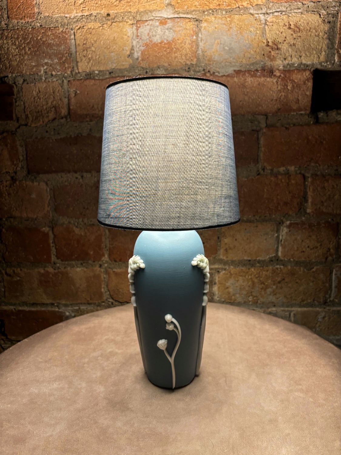 This hand painted lamp is inspired by the classic jasperware of Wedgwood.